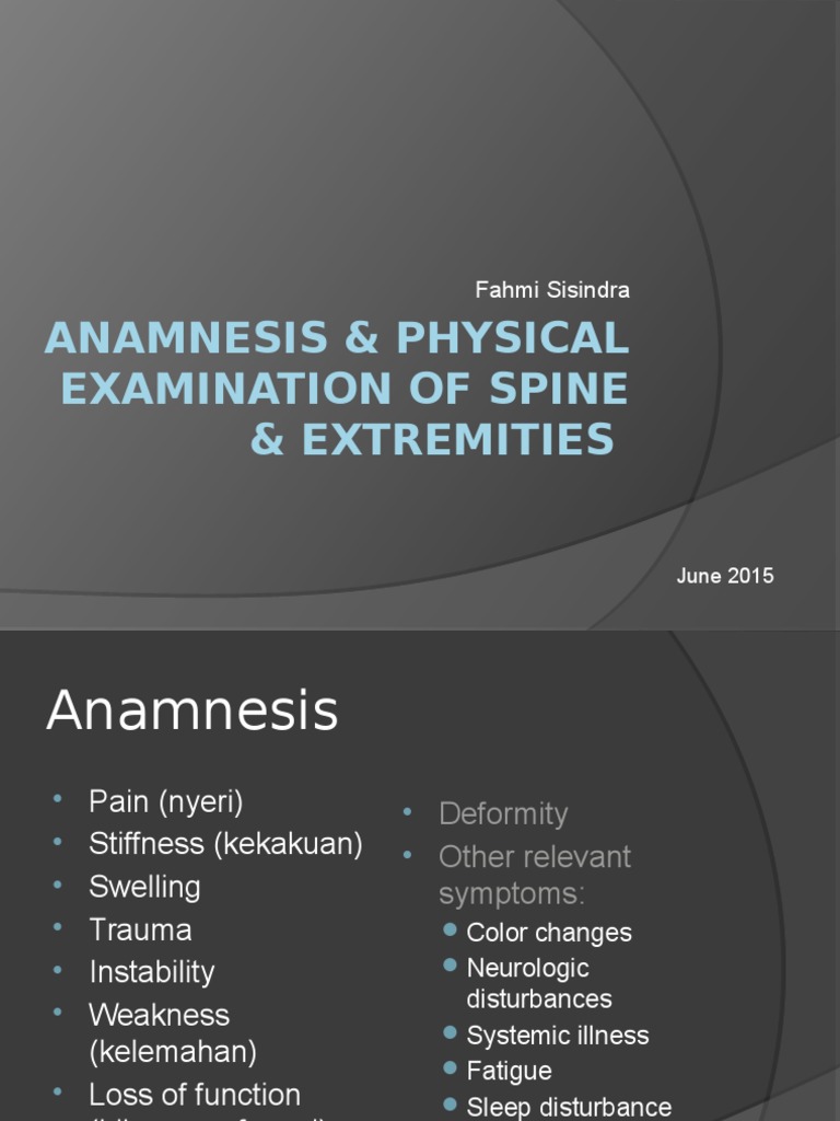 Physical Examination Of The Spine And Extremities
