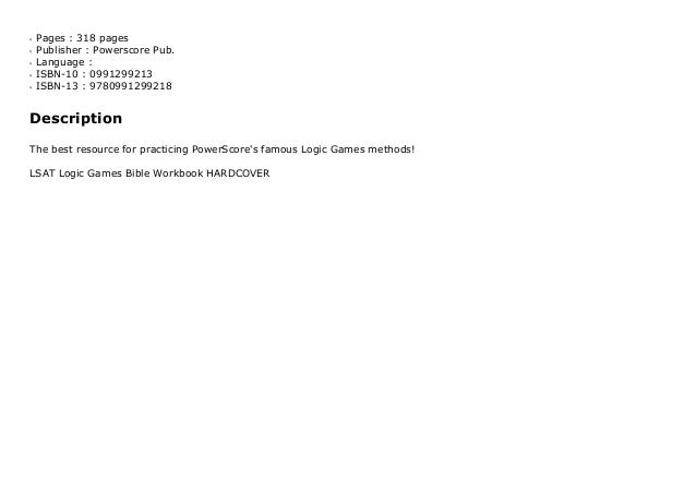 Download The Powerscore Lsat Logic Games Bible Workbook By David M Ki