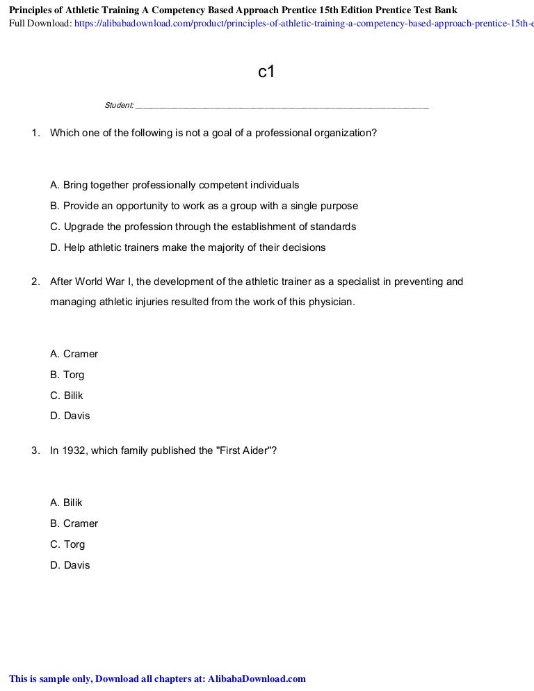Full Version Principles Of Athletic Training A Competency Based